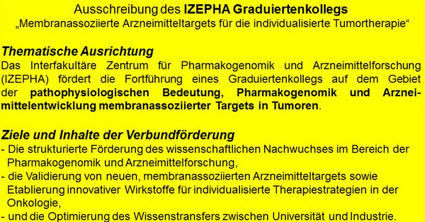 The ICEPHA Core members have approved the establishment of the Graduate Program Membrane-associated Drug Targets in Personalized Cancer Medicine. For an initial period of 3 years more than 20 PIs from Tübingen and the Campus of the Robert-Bosch-Hospital in Stuttgart will work together on 8 cutting-edge projects. We wish you all good success in your work.